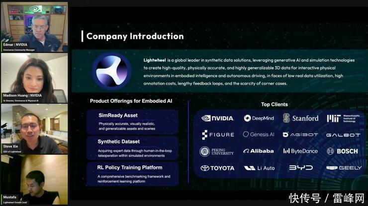 而在这次的直播中,谢晨提到他们一直在做仿真资产和合成数据,希望让 AI 能在虚拟世界里完成原本得在现实中做的训练和测试。他说,光轮的使命是“让仿真成为现实创新的起点”,也就是把数字世界变成一个可以提前验证想法的实验场。雷峰网
